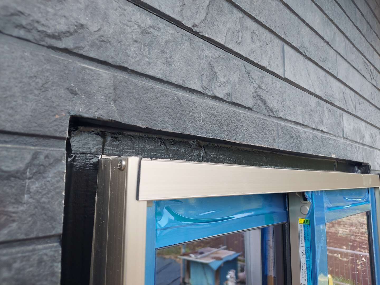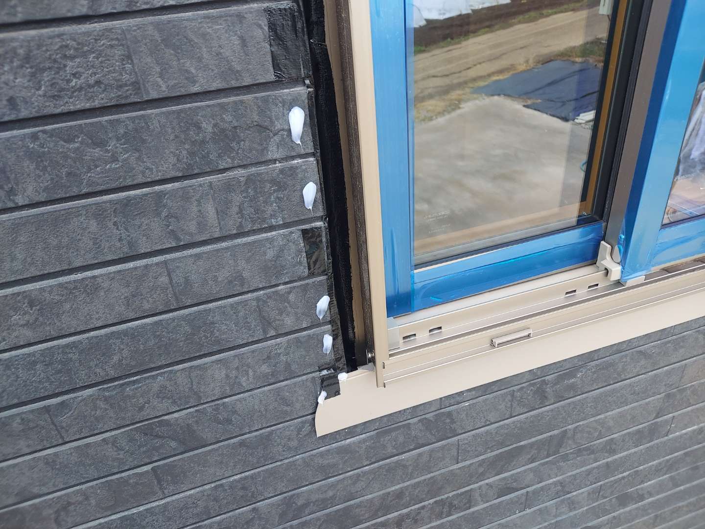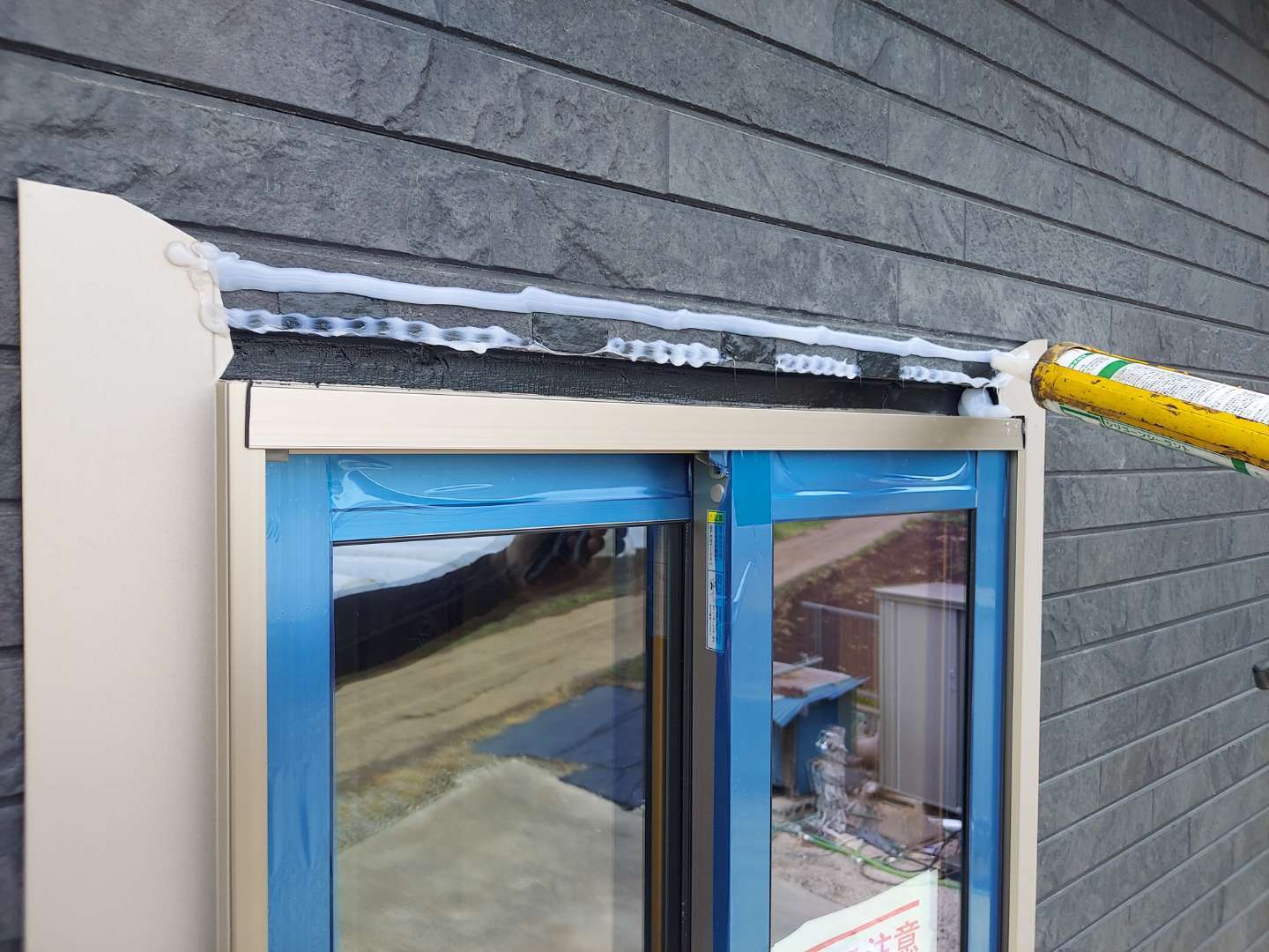 サッシと外壁に出来た隙間を、シーリングでは幅が広すぎるため施工出来ないために、弊社では、この方法を良く用います。