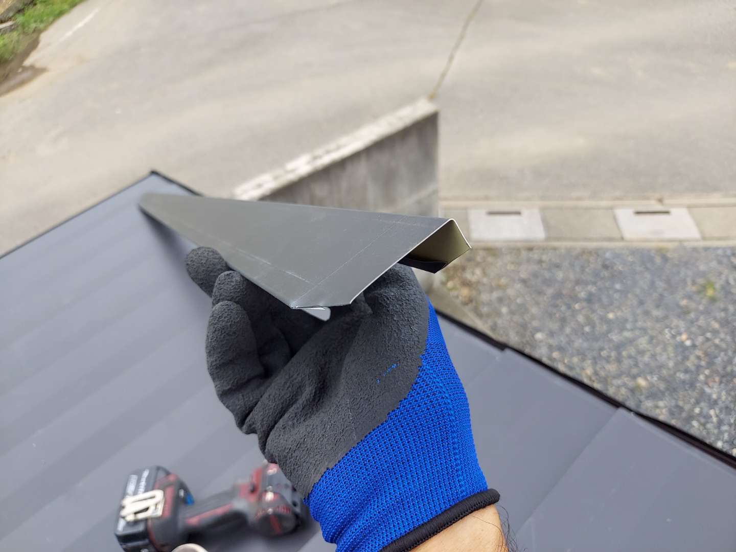 屋根本体は完了しましたが、両側部分の端部が断面が見えてしまうので、端部カバーを取り付けます。
