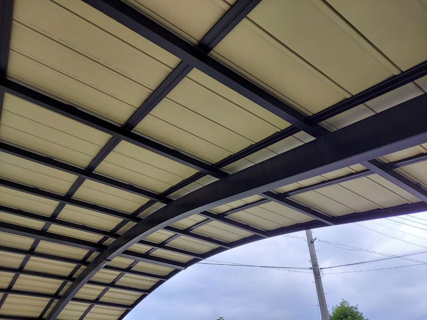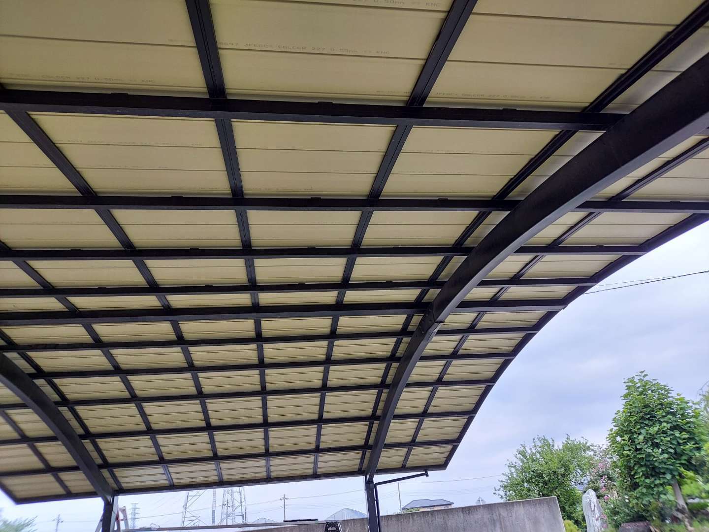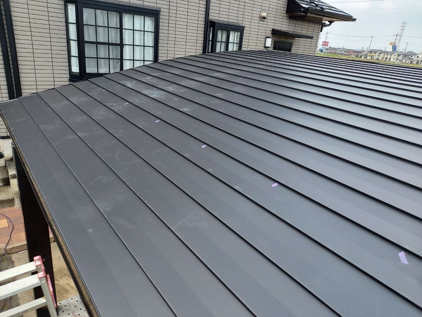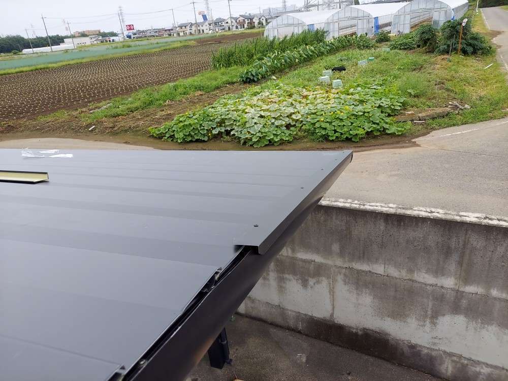 一般的な屋根材は、厚みは0.35mmが主流ですが、下地がアルミ骨組みなので、0.5mmと厚もので施工しました。