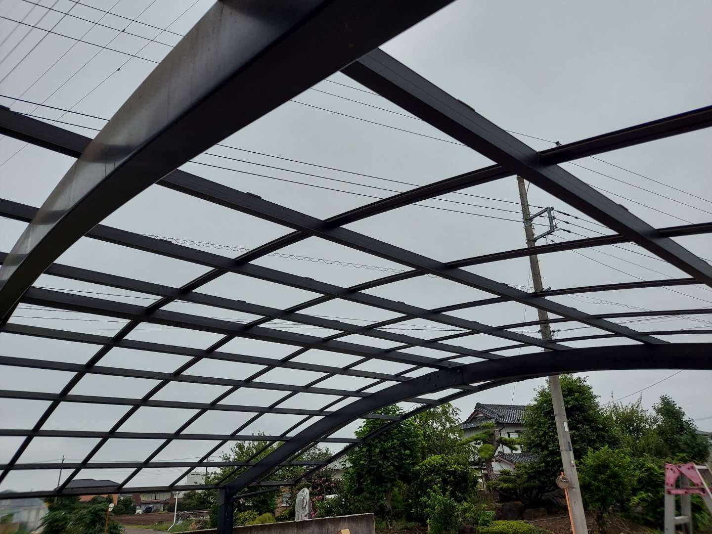 近隣を見渡しても、あちこちのお宅のカーポート屋根が破損していました。