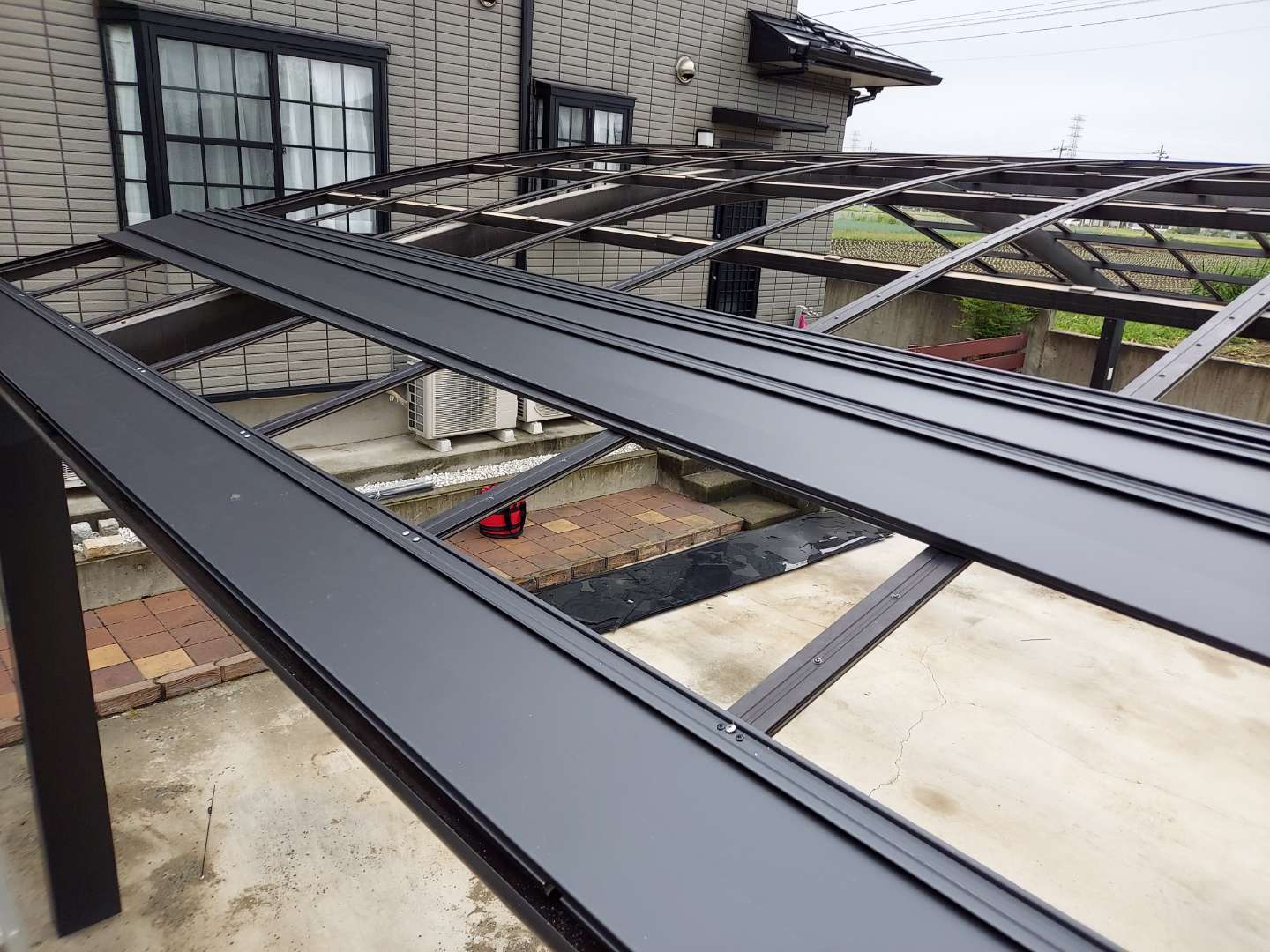 降雹被害による、カーポート屋根の改修工事を行わせていただきました。
