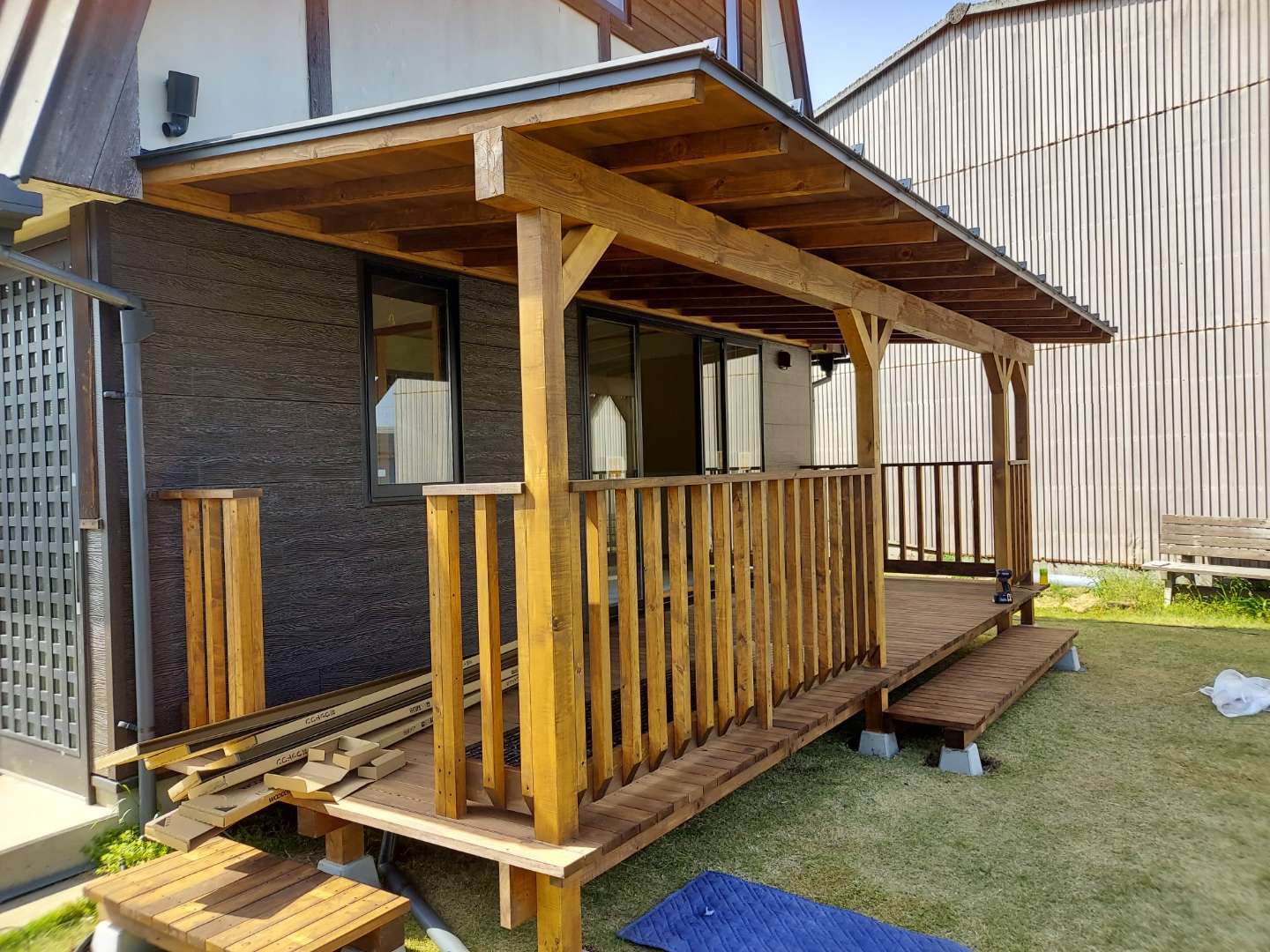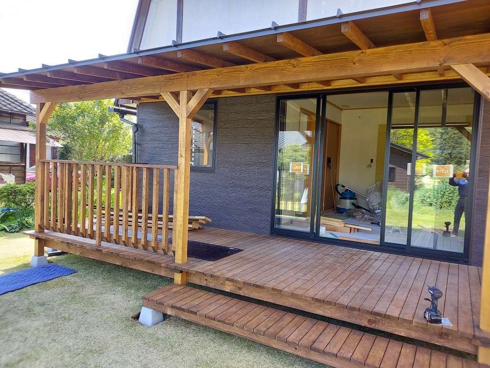 ウッドデッキは大工さんの工事なのですが、とてもカッコよかったので、写真撮らせていただきました。