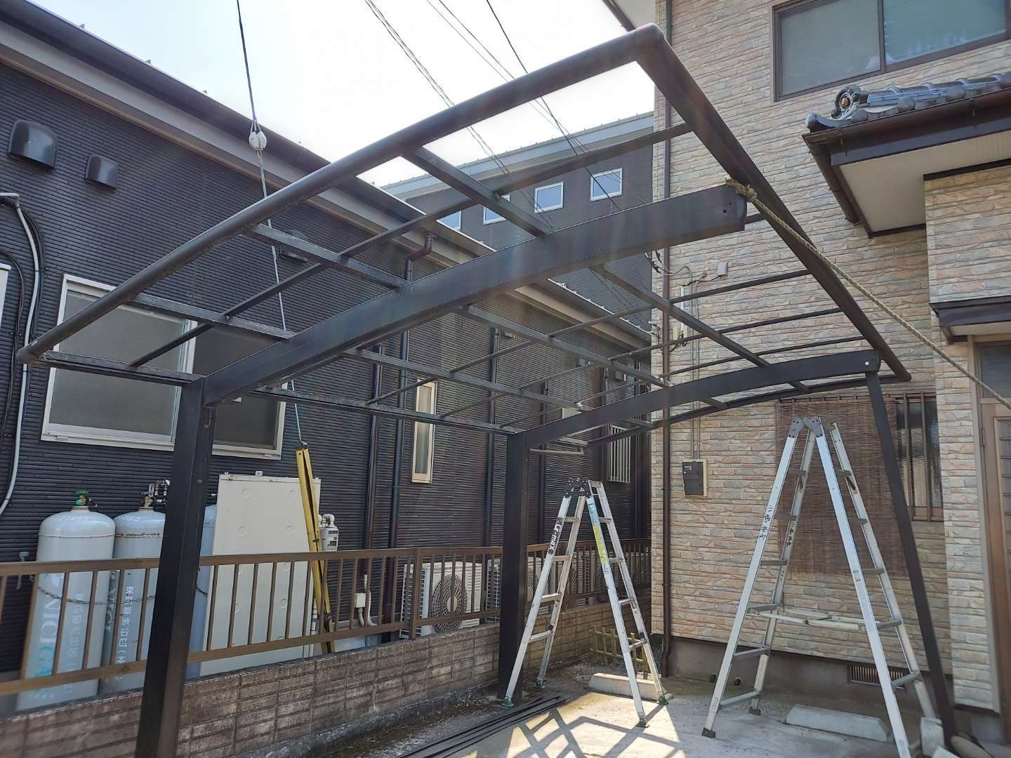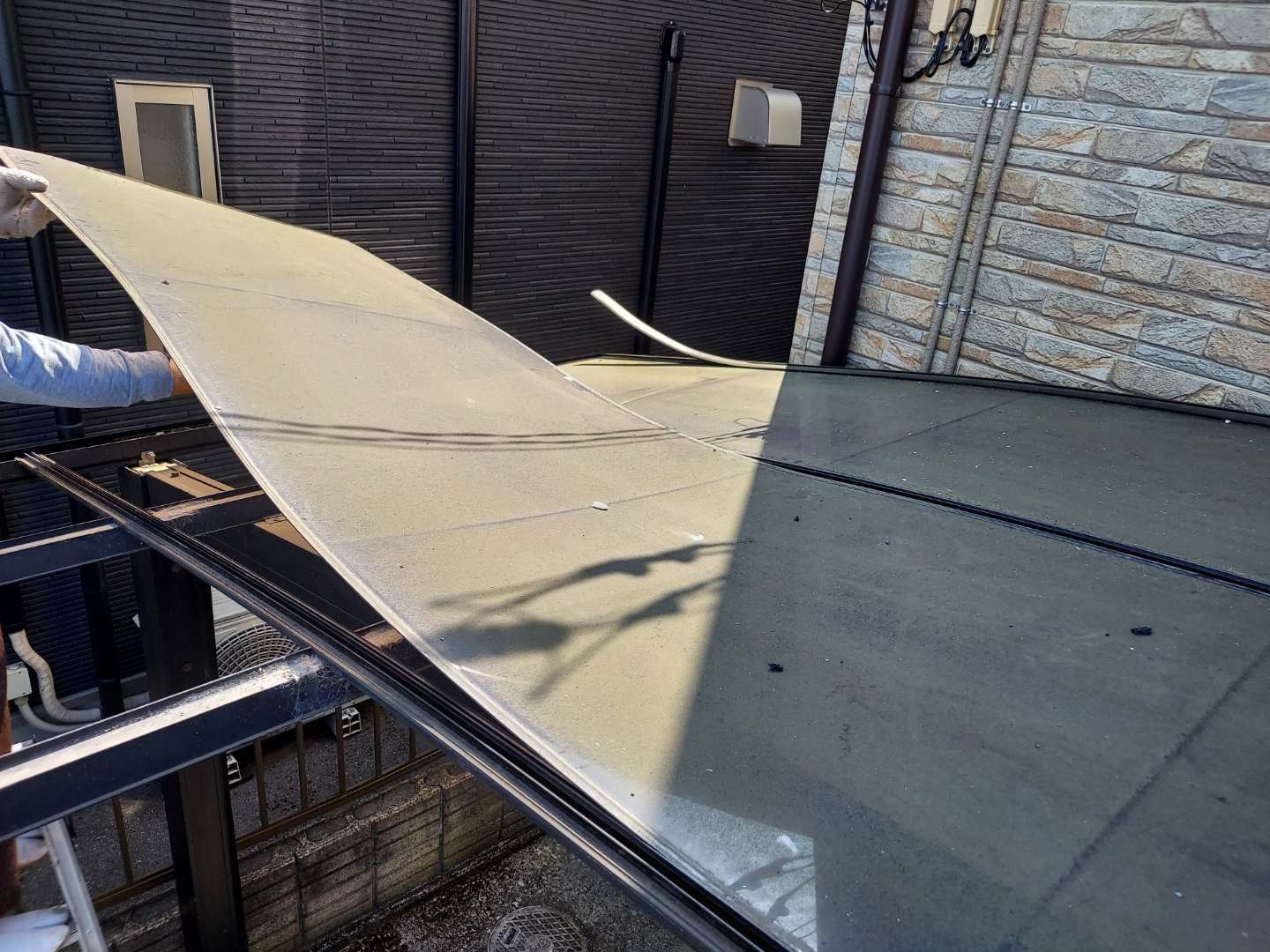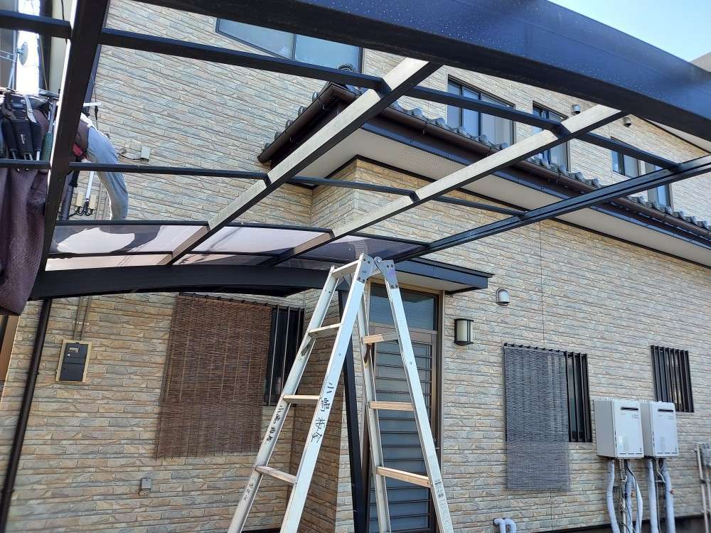 カーポートの屋根が一部破損箇所があり、今回は経年劣化もあり全交換工事となりました。