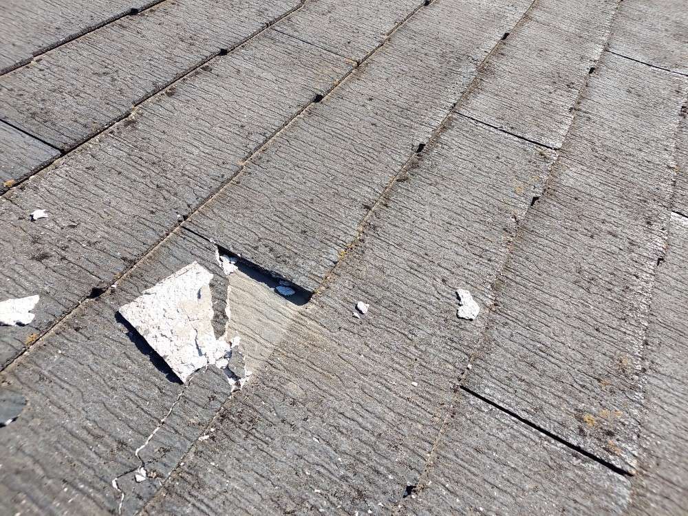 このように非常に割れやすいコロニアルは、アスベストを使用していたコロニアルから、アスベスト無しのコロニアルに切り替わった最初のころの屋根材に多く見られる様です。