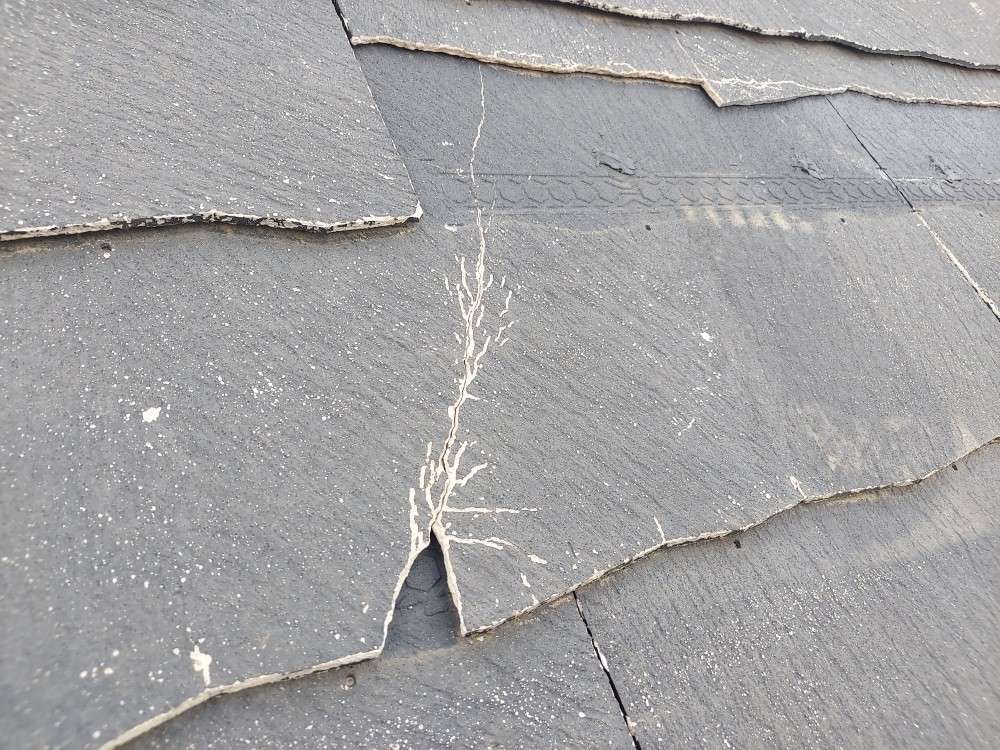 既存屋根コロニアルの劣化による、ひび割れ、欠けなどがありました。