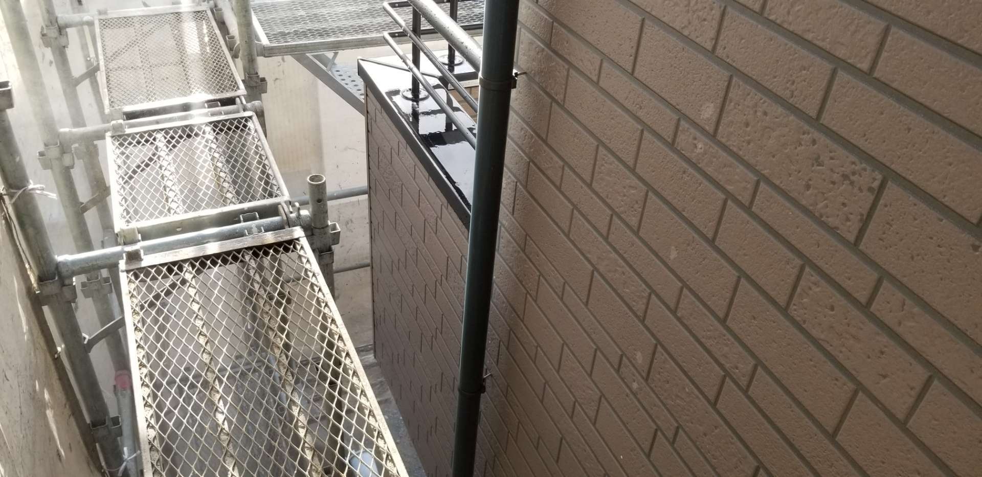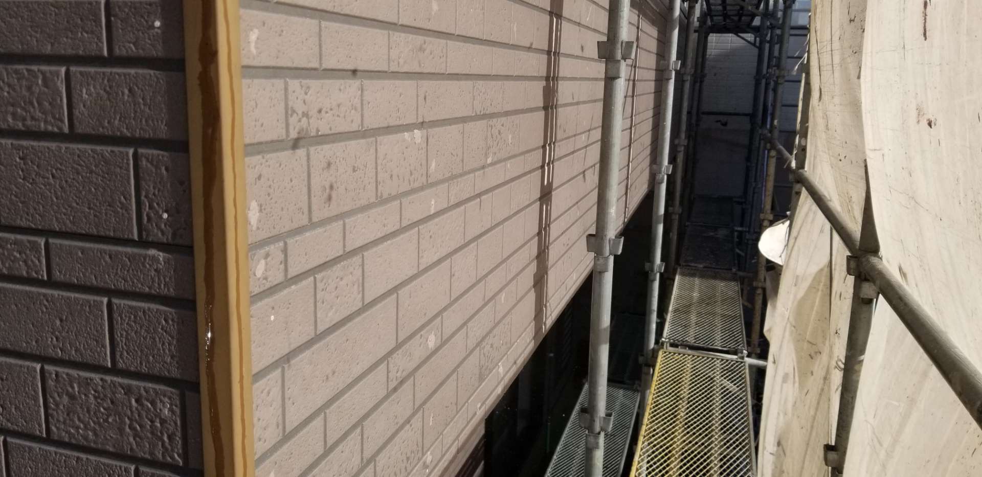 ベランダ部分のみ、外壁張り替え工事です。写真は既存外壁材(窯業系サイディング)です。分かりにくいですが、ジョイントが浮いてしまい、所々釘が浮いています。