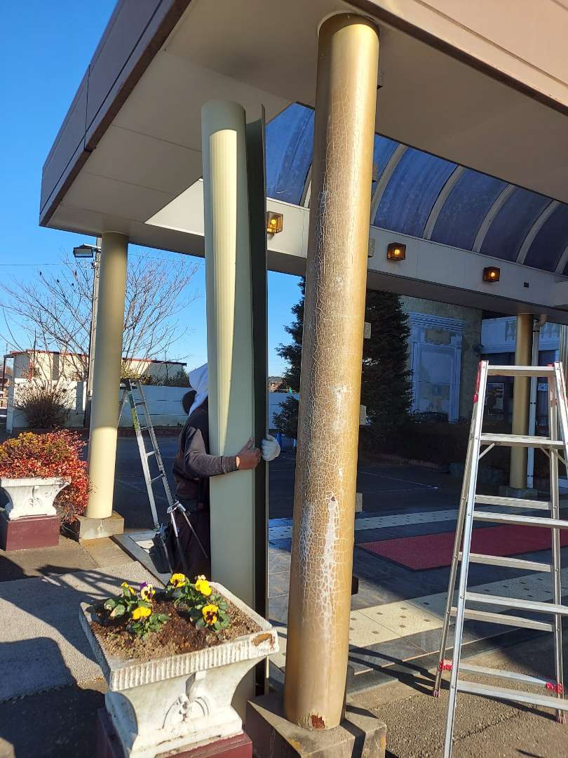 その他建築 特殊工事 茨城県八千代町 ポーチ柱カバー工事 今回は少しめずらしい工事をさせていただきました。エントランスのポーチ柱の表面の塗膜が、経年劣化のため、剥離劣化していました。塗装では困難なため、ガルバリウム鋼板でカバーしました。丸型の柱のため、加工、取付はなかなか大変な作業でしたが、うまく納まりました。 1 / 1 前の施工事例 戸建て テラス屋根補修工事 次の施工事例 戸建て 茨城県古河市 小屋根改修工事