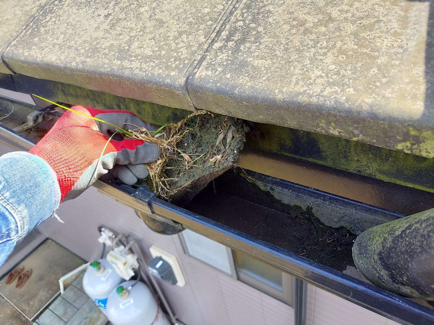 雨樋からの雨水溢れのため、清掃を依頼されました。